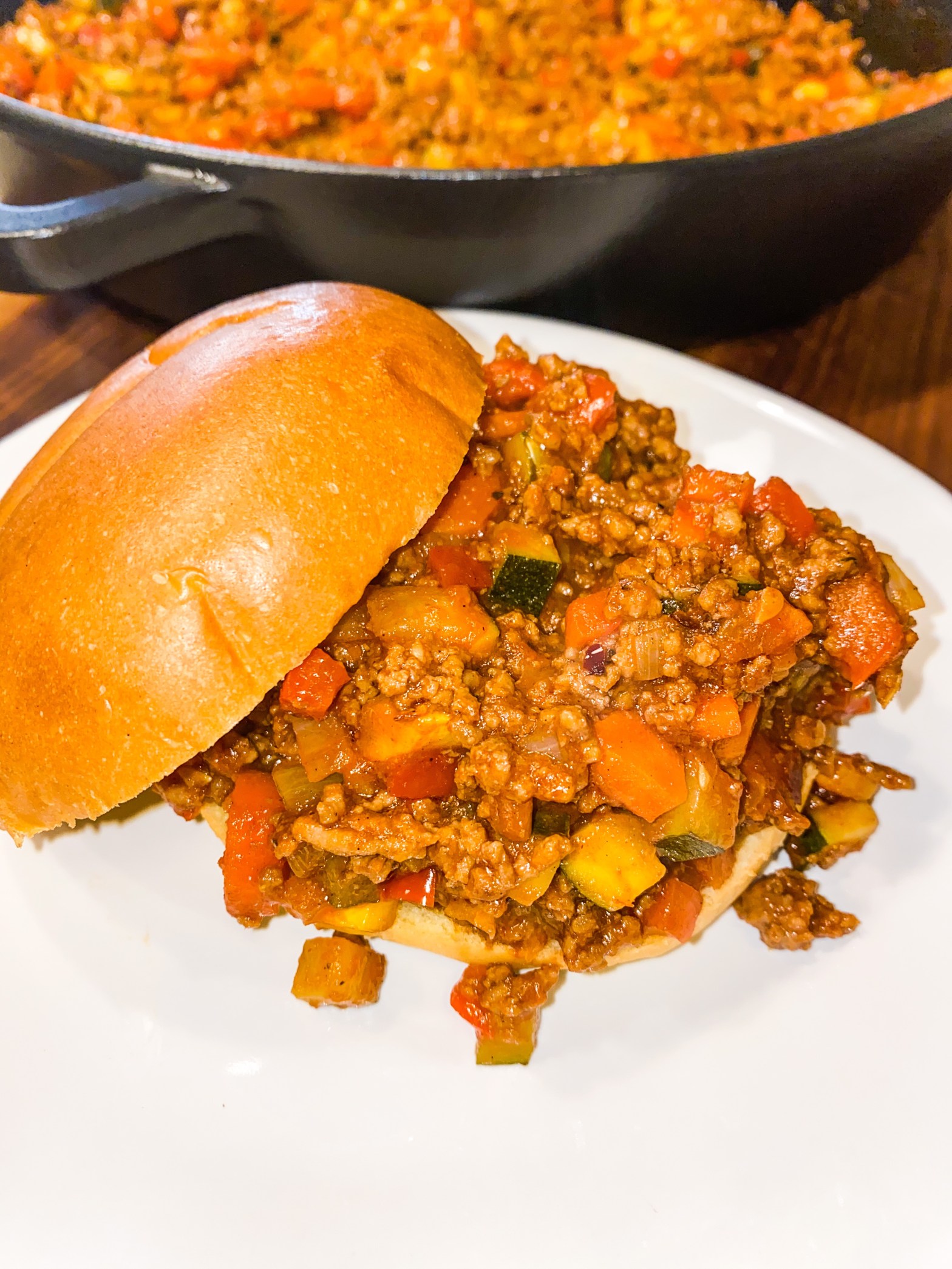 If you’ve been following along here you may notice a trend in my cooking. I love to sneak in extra veggies where they may not belong. I know extra veggies – woah, living on the wild side HA. But really, any time I can put my veggies into the main dish without needing to make another side, it’s a good night. Less dishes = a happy husband. These sloppy joes are perfect on their own but if you’re looking for another side, I highly recommend sweet potato puffs (these are my favorite!).